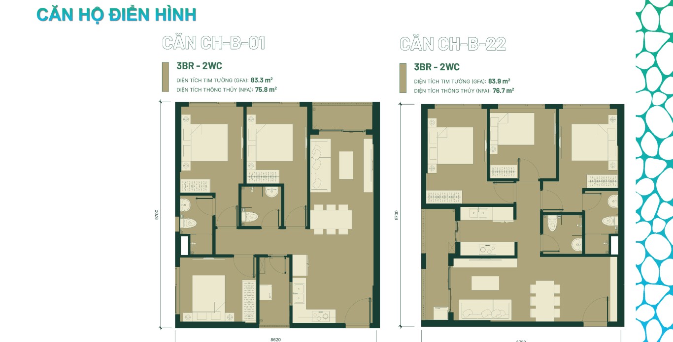 1.144 căn hộ – 268 căn officetel – 29 Shophouse - Căn hộ Officetel: 34,6 - 68,6m² - Căn hộ 1PN +: 52,9 - 55,3m² - Căn hộ 2PN - 2WC: 66 - 78,3m² - Căn hộ 3PN - 2WC: 76,4 - 83,9m² - Shophouse: từ 113,6 - 479,6m² |